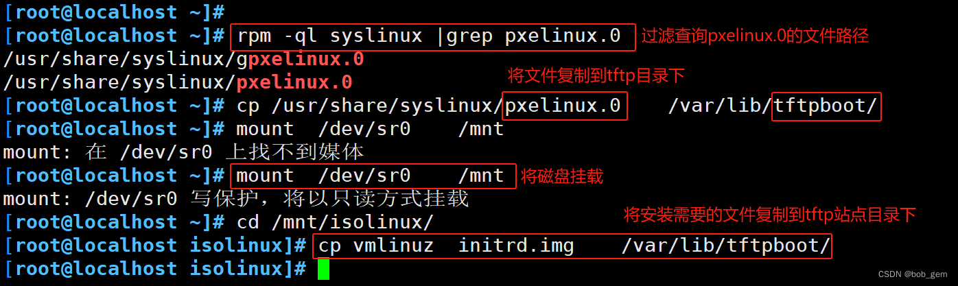 [root@localhost ~]#cp /usr/share/syslinux/pxelinux.0 /var/lib/tftpboot/
