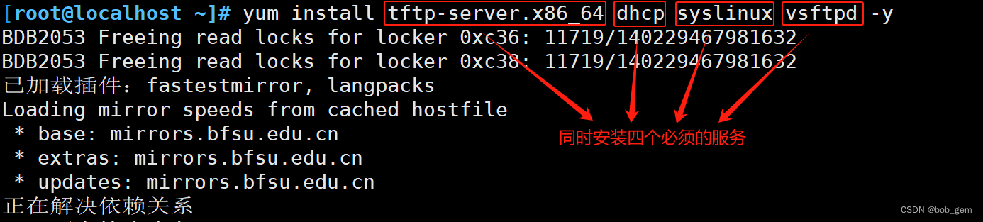 [root@localhost ~]# yum install tftp-server.x86_64 dhcp syslinux vsftpd -y