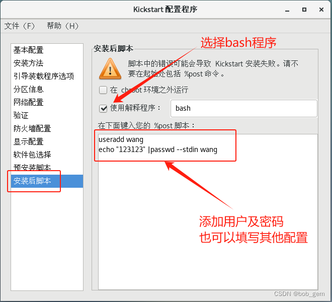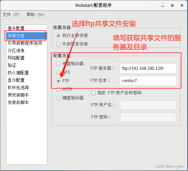 将四个必备文件准备好后,利用kikstart应答文件,完成一键装机