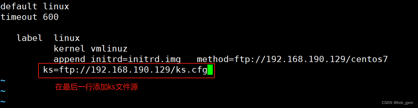 [root@localhost tftpboot]#vim pxelinux.cfg/default
