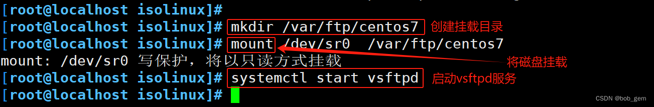 [root@localhost isolinux]#mount /dev/sr0 /var/ftp/centos7