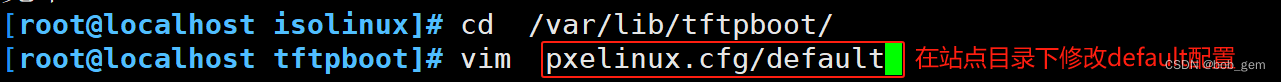 [root@localhost isolinux]#vim /var/lib/tftpboot/pxelinux.cfg/default