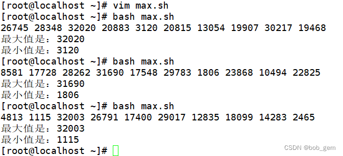 [ $i -eq 0 ] && min=${a[0]} && max=${a[0]}