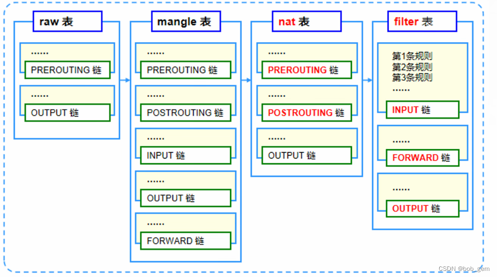 表中有链,链中有规则