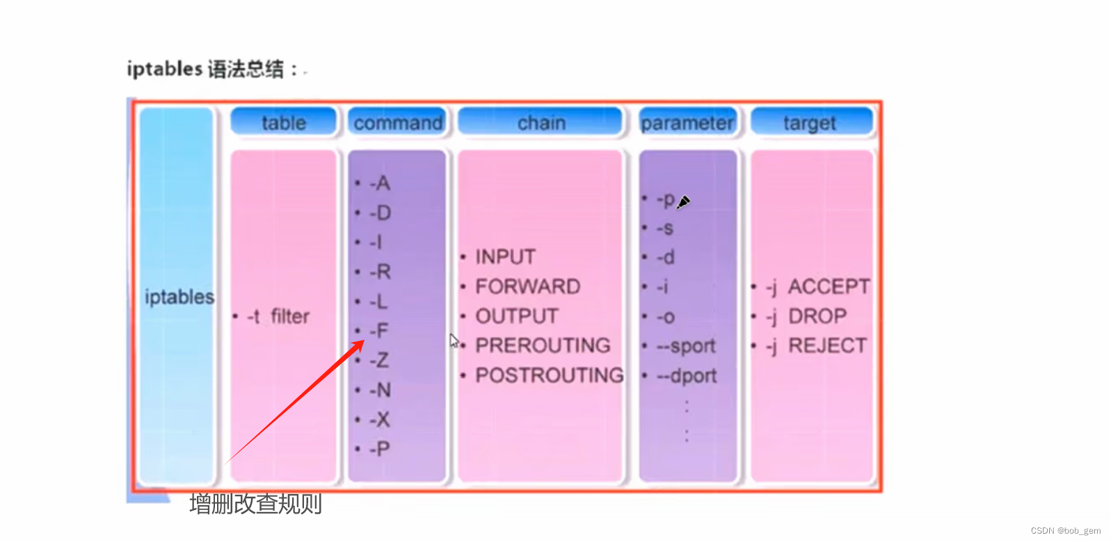 iptables [-t filter] l或A 链 (INPUT) 规则