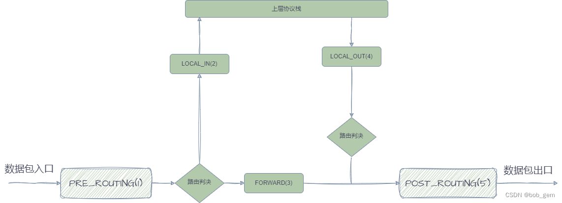 链的分类依据:处理数据包的不同时机