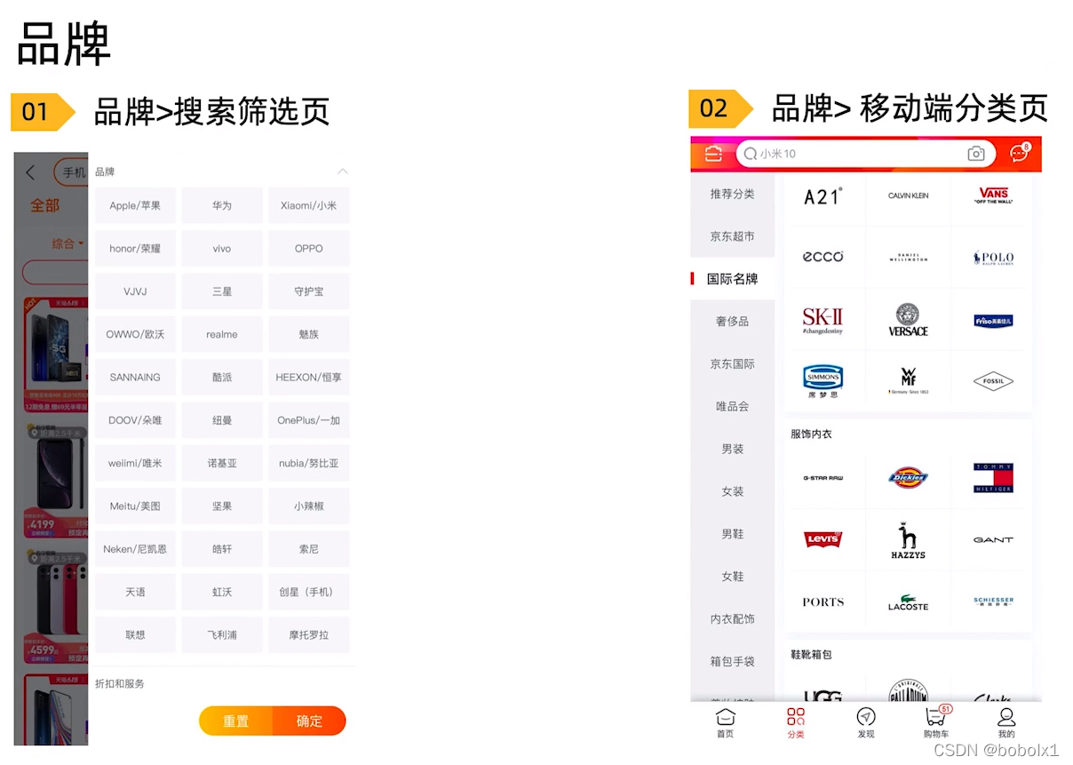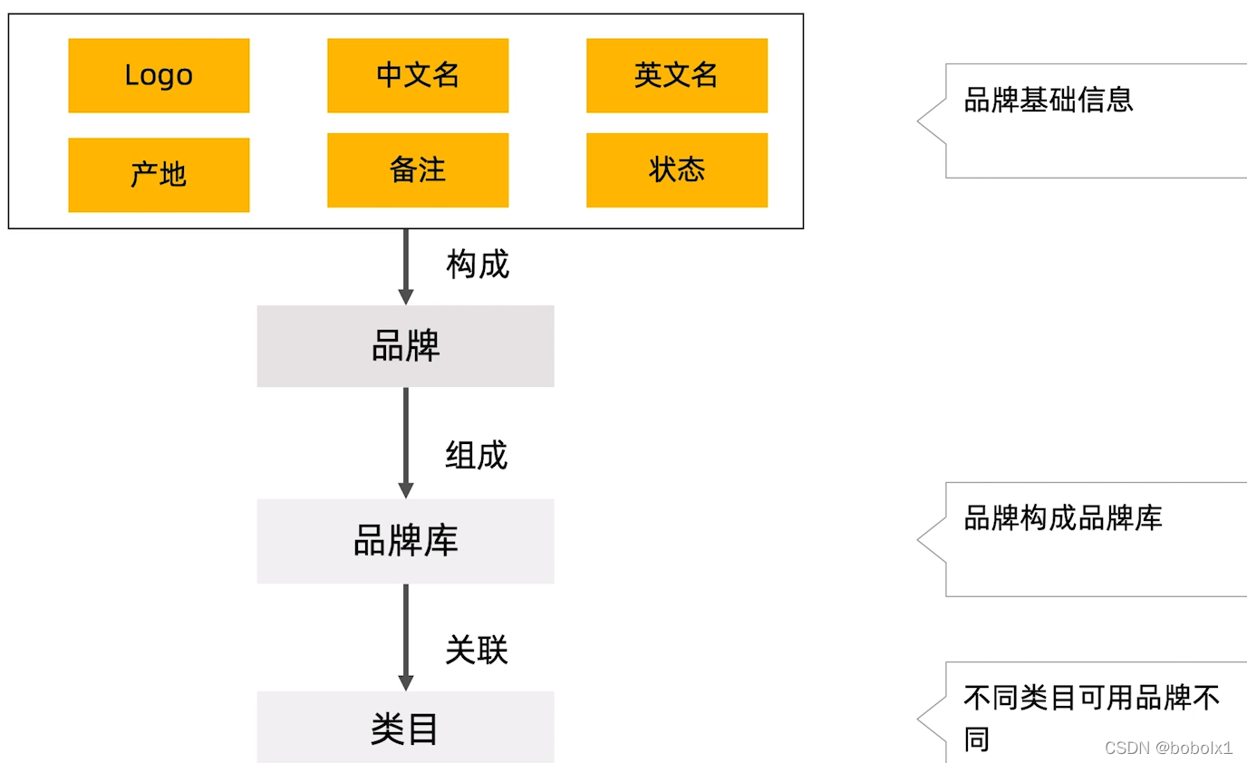 前台类目对应后台类目,自由组合(1/2/3级)前台类目直接对应品牌、商品;