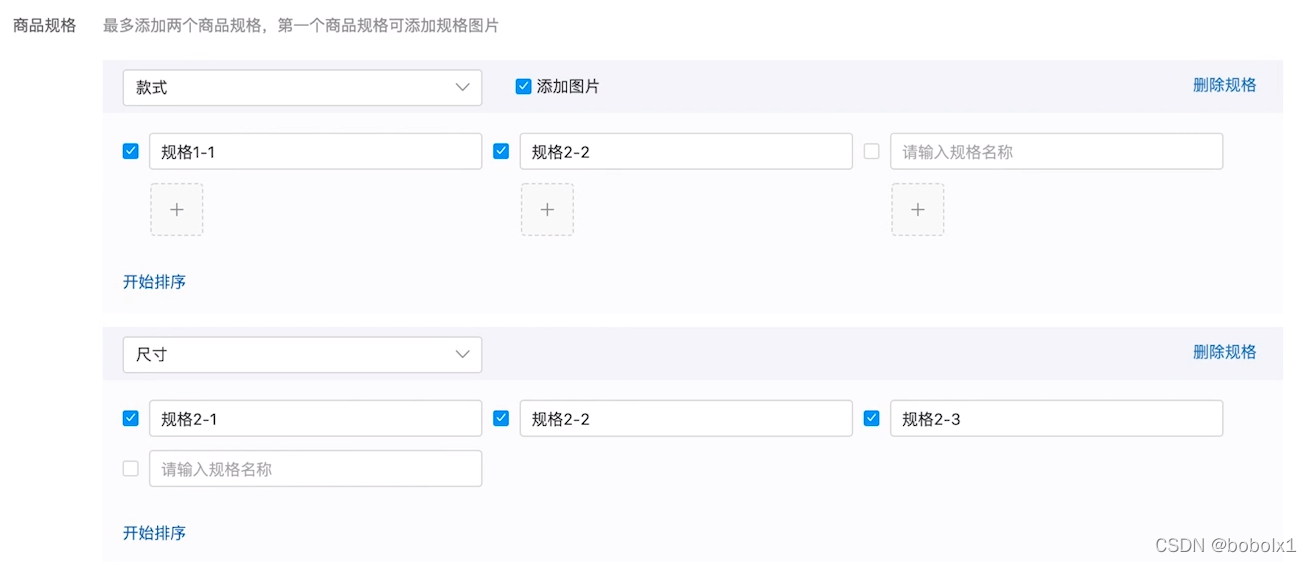SPU下单规格,但是多规格值,有N个规格,就有N个