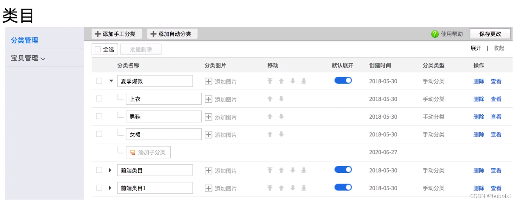 前台类目面向我们的运营和用户,基础类目则是面向我们的采购供应链的管理