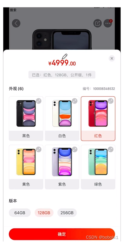 SPU下多规格、多规格值,有N个规格,M个规格值,就有M1*M2*M3.个SKU,可设置不同的价格、库存、商家编码