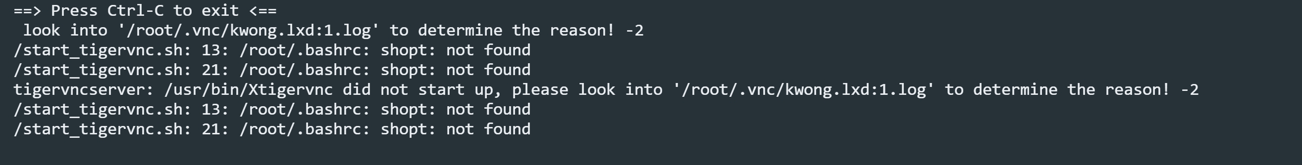 直到后来我重启了LXD容器,发现容器实例启动异常,主要原因是tigervnc的服务启动不成功: