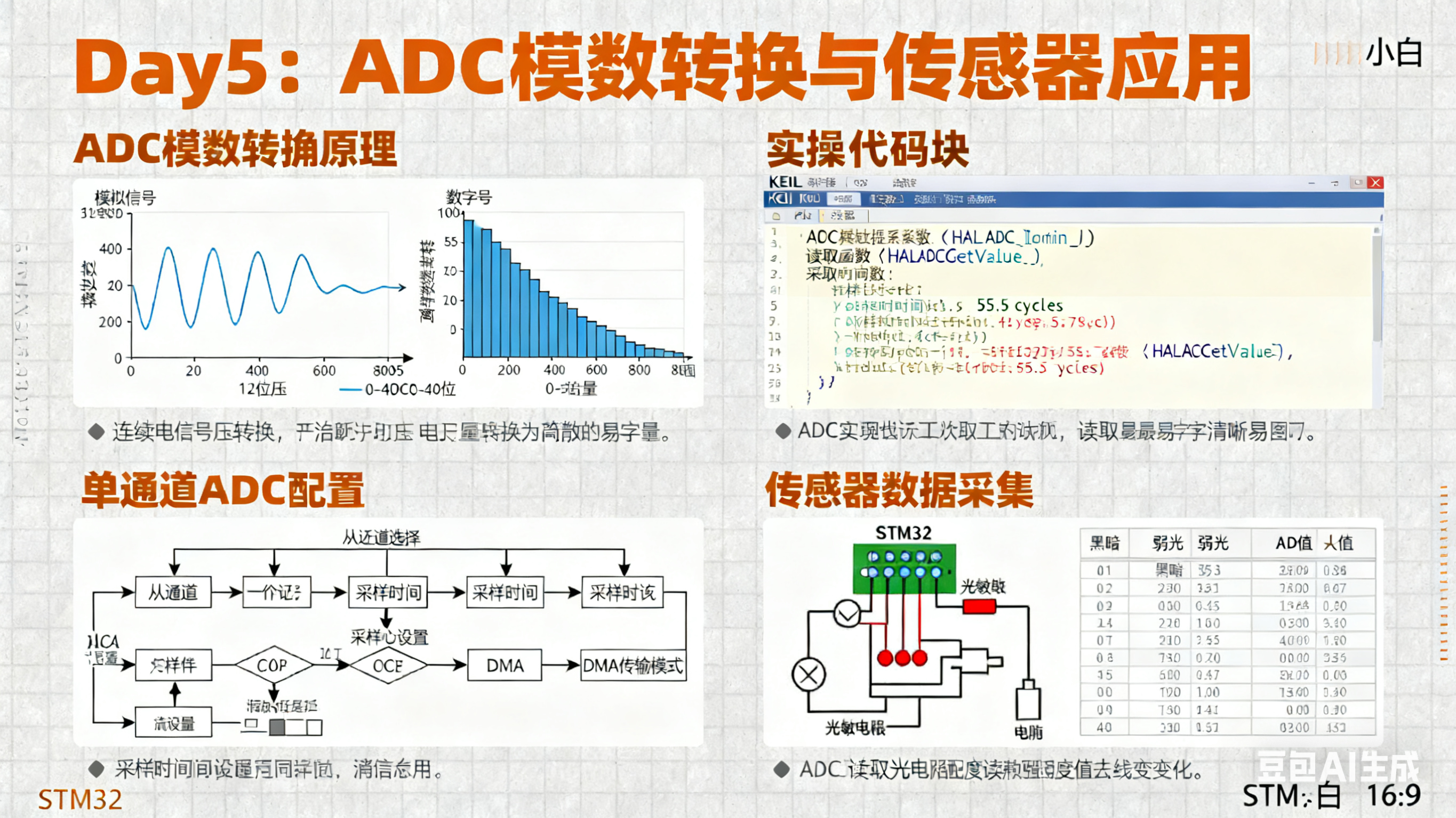 接线:STM32 的 PA6(TIM3_CH1)接 LED(串 220Ω 电阻),不用改别的