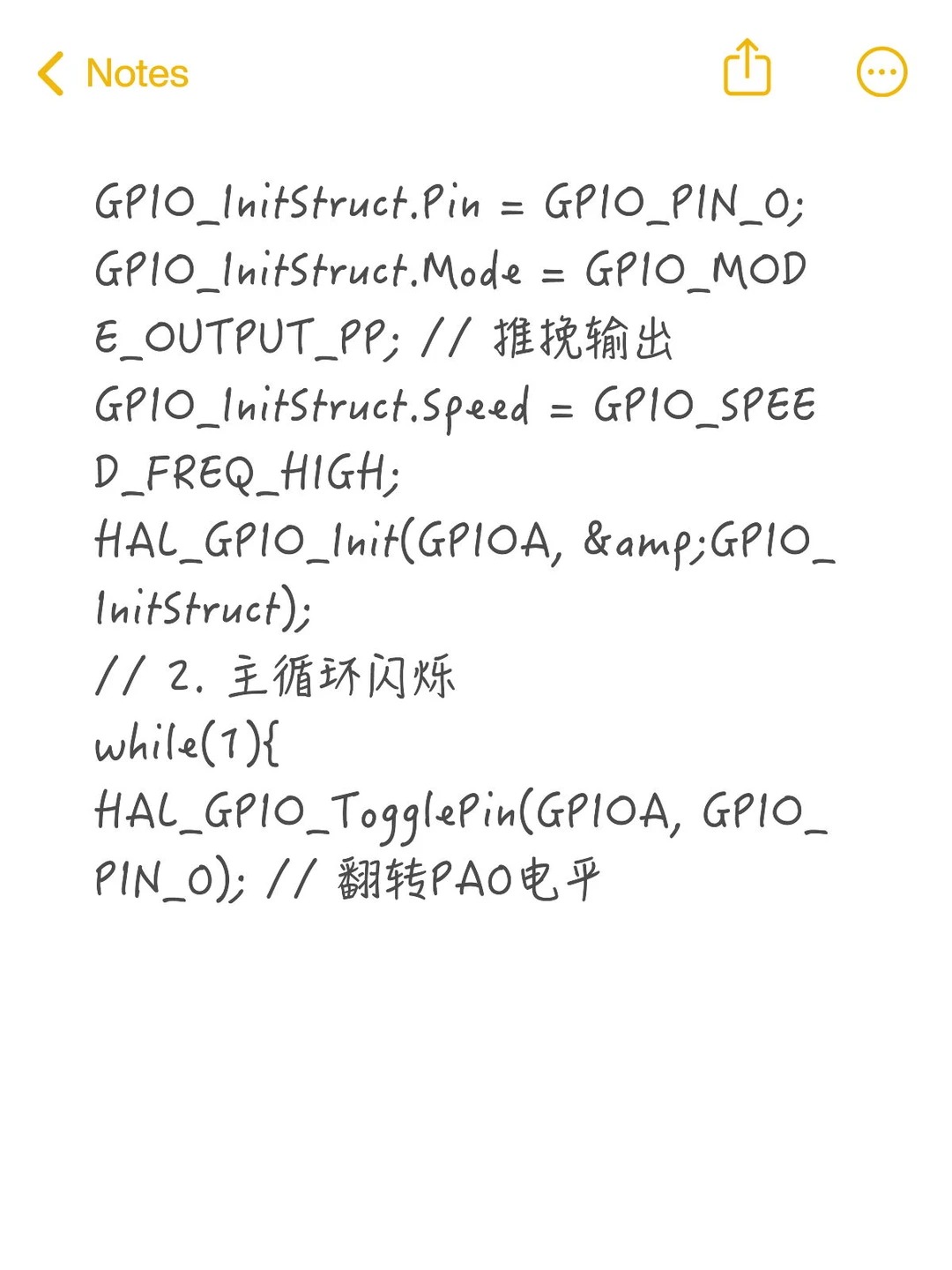 HAL_GPIO_TogglePin(GPIOA, GPIO_PIN_0); // 翻转PA0电平