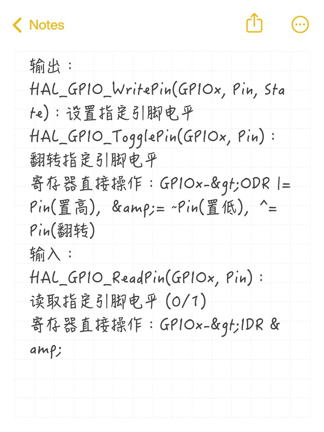 HAL_GPIO_ReadPin(GPIOx, Pin):读取指定引脚电平 (0/1)