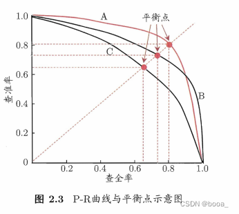 若一个学习器的R-P曲线被另一个R-P曲线完全包住,则后者的性能优于前者;若两个R-P曲线发生了交叉,只能在具体的查准率或查全率条件下比较性能。