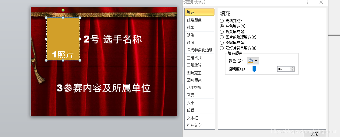 给照片框设置填充,除了 无填充 选项外,其他选项都可以。最后先保存,然后另存为放映格式。如果是 无填充,展示时,照片会丢失。