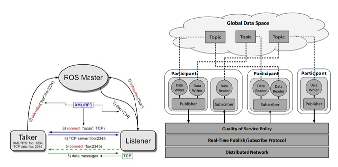 DDS采用数据为中心的发布-订阅模型(DCPS),创建全局数据空间概念。其核心优势在于: