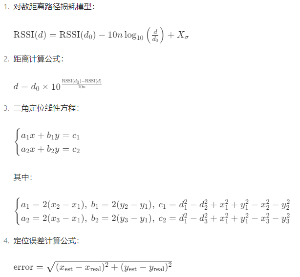通过该模型,可将采集到的 RSSI 值转换为目标与 AP 的距离,为定位提供基础数据。