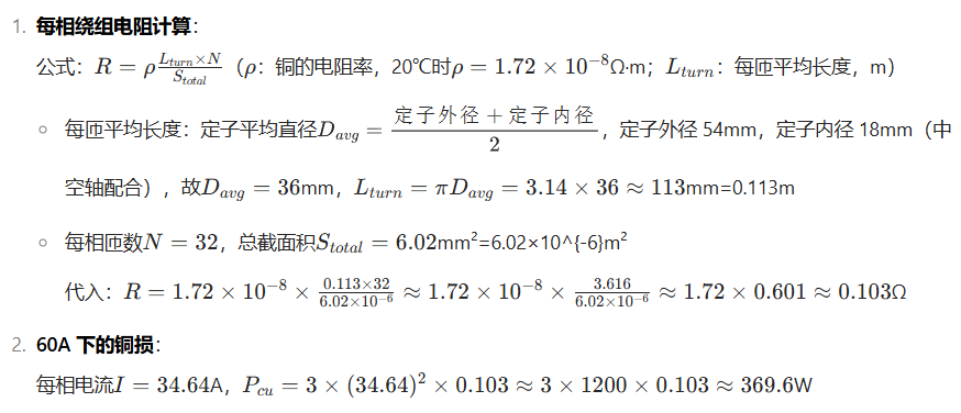 | 仿真验证 | 验证电磁性能、温升、机械应力 | 仿真报告(磁密、扭矩、温升曲线) | 60A 下的铜损 / 铁损计算、中空轴扭矩变形量 |