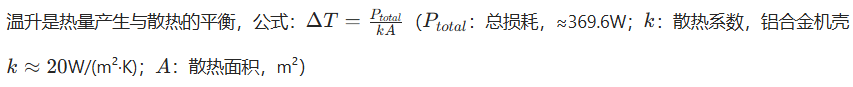 | 耐温等级(℃) | 130(155/180) | 130(155) | 130(155) | 选 155℃级(耐温等级≥工作温度 + 温升 = 25+36.5=61.5℃) |