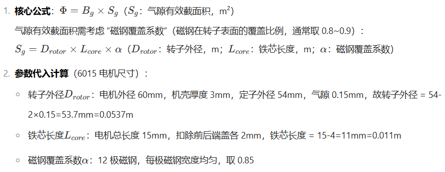 磁通量是穿过定子绕组的磁线总量,由磁钢提供,公式推导如下: