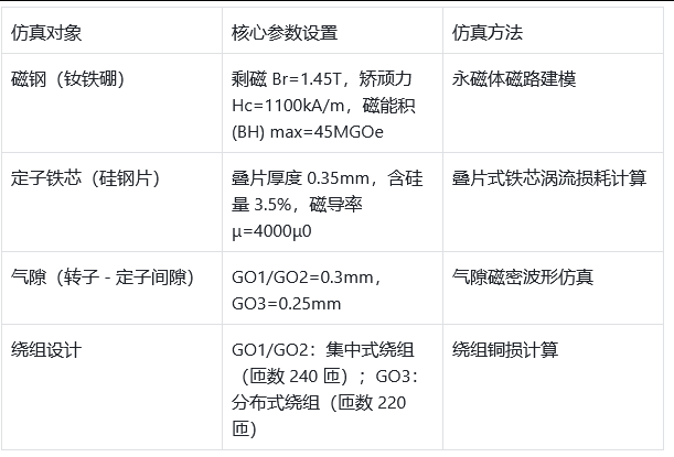 GO1 初始仿真气隙磁密波形畸变率达 15%(导致电磁噪声大),通过调整磁钢充磁方向(从径向充磁改为平行充磁),畸变率降至 8%;GO3 进一步优化定子槽型(采用梨形槽),磁密波形畸变率仅 5%,电磁噪声从 GO1 的 65dB 降至 58dB。