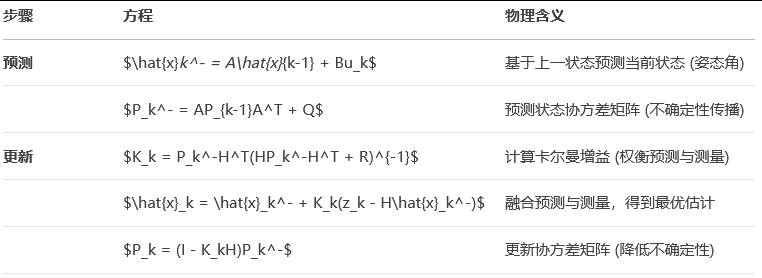 MPU6050提供的是噪声污染的原始数据,需融合陀螺仪动态特性和加速度计静态特性,通过卡尔曼滤波得到高精度姿态角。