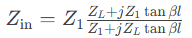 其中Z1是匹配段特性阻抗,ZL是天线输入阻抗,β是相位常数,l是匹配段长度。