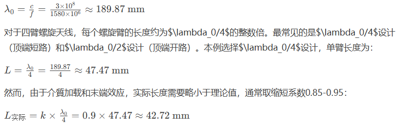 四臂螺旋天线的设计始于工作频率的确定。我们需要覆盖多个导航系统: