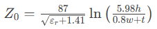 对于50Ω特性阻抗,FR-4基板(h=1.6mm,εr=4.4),线宽约为3mm。