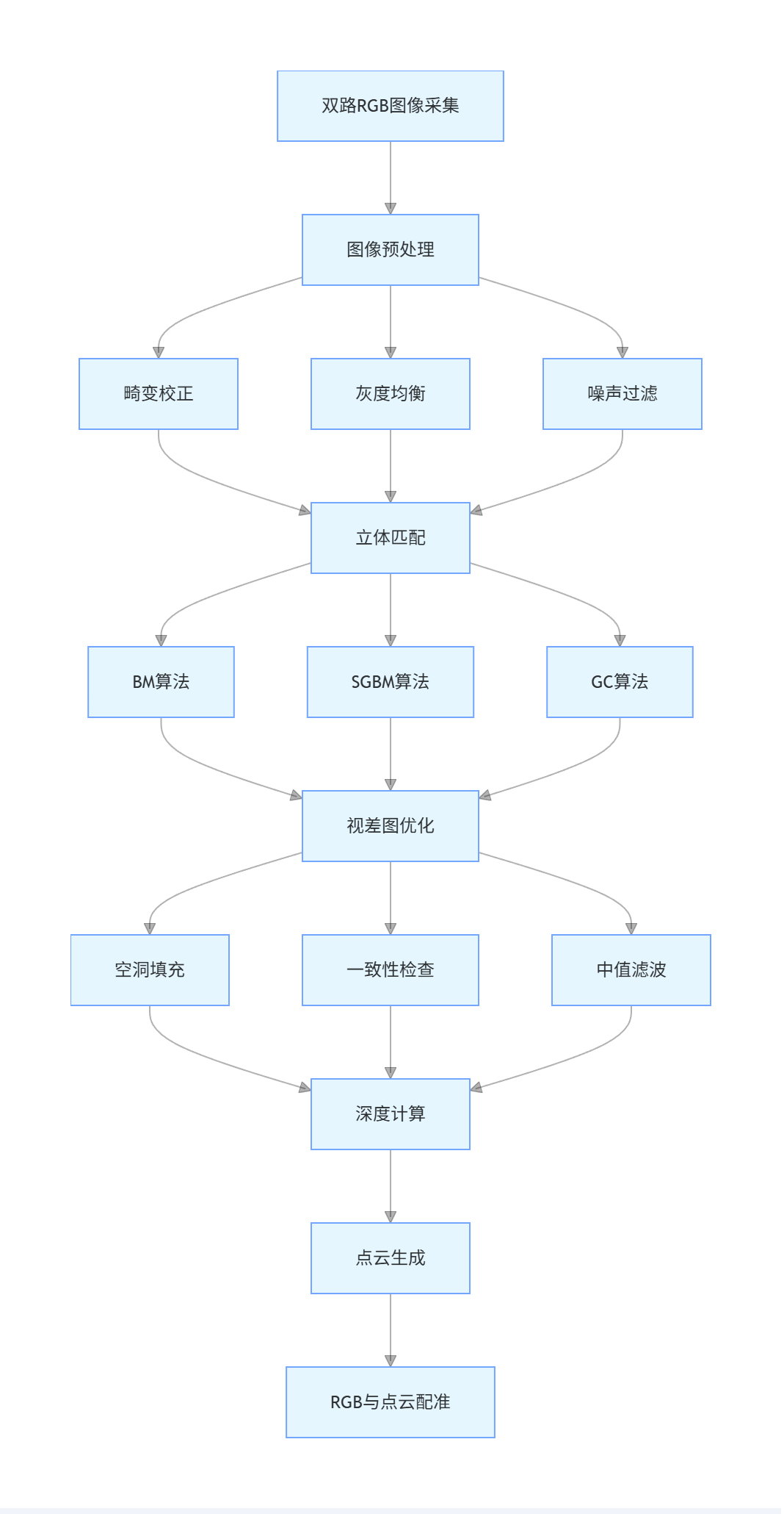 在计算机视觉领域,获取三维空间信息是实现场景理解、目标定位、运动追踪等高级功能的基础。目前主流的三维感知方案主要分为两类:基于视差计算的 RGB 双目摄像头和基于主动光投射的深度摄像头(包括结构光、TOF 等技术)。本文将从技术原理、研制难点、开发工具、产品案例、性能对比、应用场景、知识储备、标定方法等八个维度,通过多个专业表格和技术示意图,系统剖析两种技术的差异与联系,为开发者、工程师、学生提供全面的技术参考。