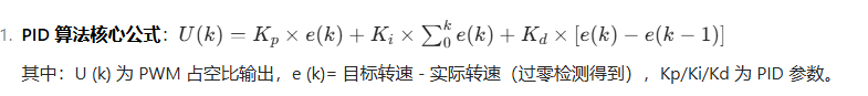 | 转速闭环模块 | PID 算法(目标转速→实际转速→PWM 占空比调整) | 3.1 节(Cortex-M4 DSP 指令)、3.10.2 节(定时器 PWM 占空比调整) | 以过零检测得到的实际转速为反馈,调整 PWM 占空比,实现转速稳定控制 |