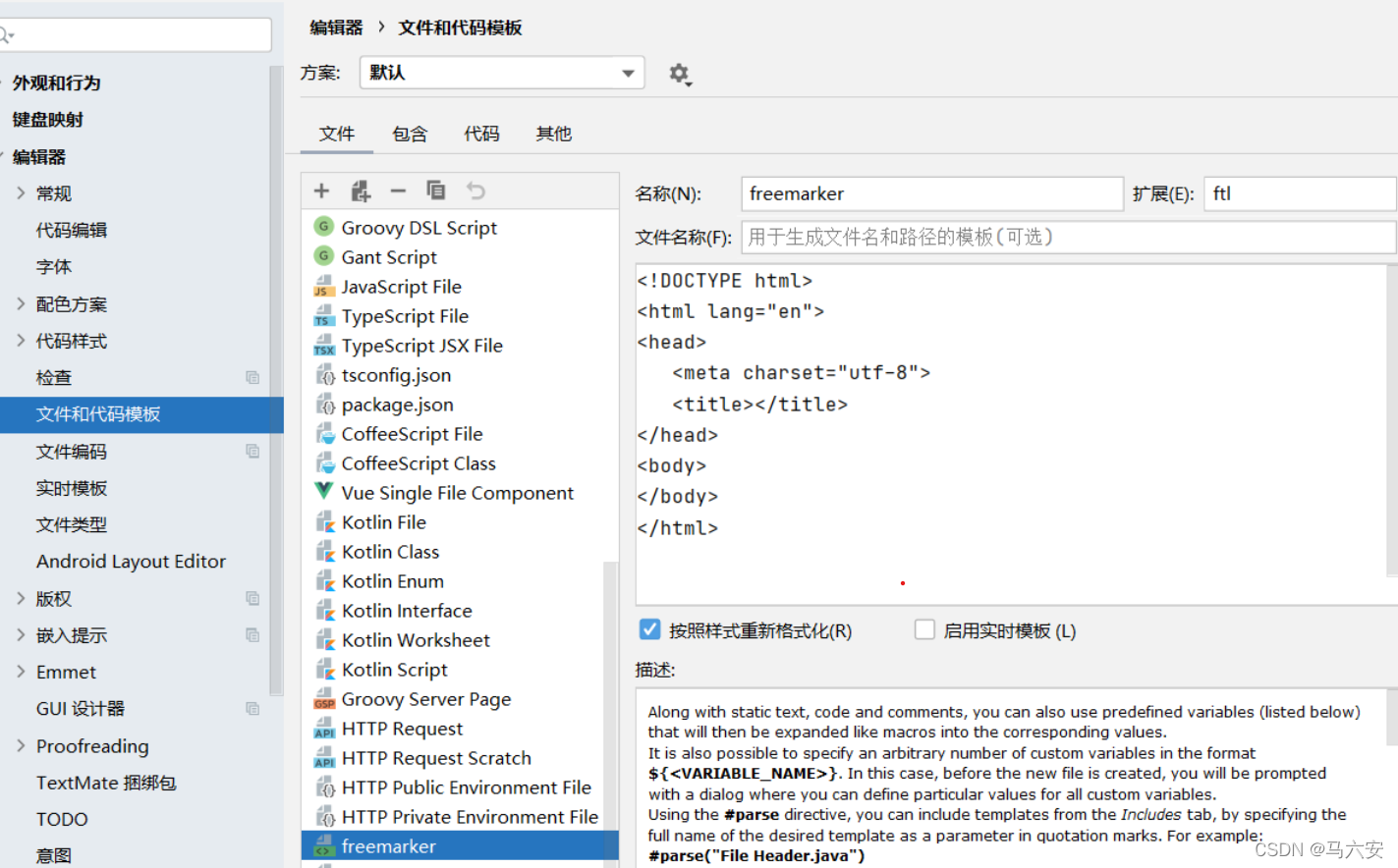 设置freemarker文件的模板 ,以后新建freemarker文件时会自带编辑的代码