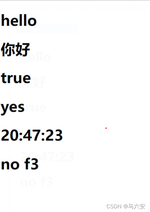 在freemarker中不支持值为null,下面表达式的意思是如果f3为空就显示no f3字符串