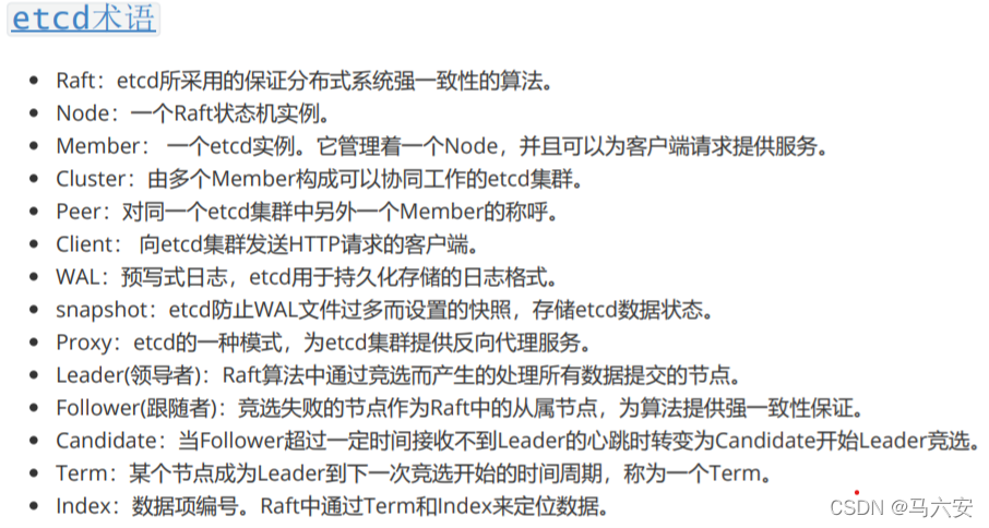 etcd 是一个高度一致的分布式键值 (key-value) 存储,它提供了一种可靠的方式来存储需要由分布式系统或机器集群访问的数据。它可以优雅地处理网络分区期间的领导者选举,即使在领导者节点中也可以容忍机器故障。