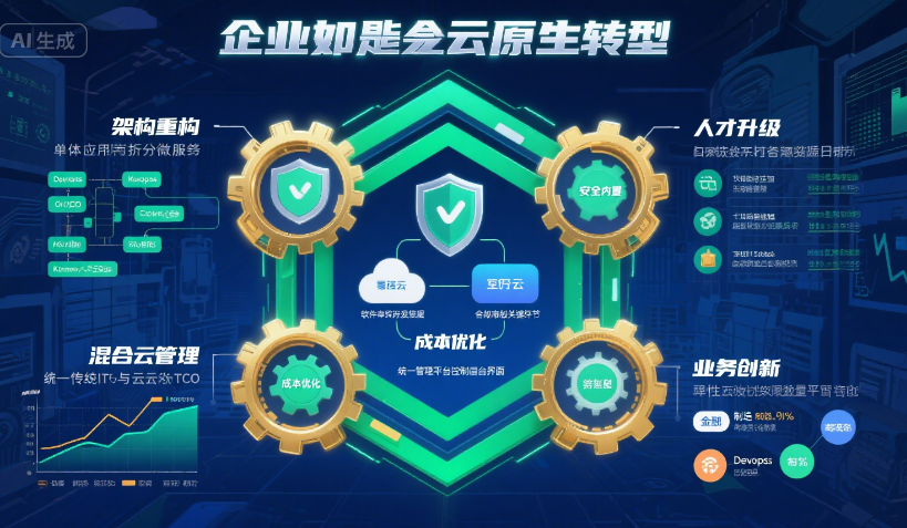 成立 “业务 - 技术联合小组”,明确云原生对业务的价值指标(如金融行业关注 “交易峰值处理能力提升”“故障恢复时间缩短”,制造业关注 “产线响应速度”“边缘设备数据处理效率”)。某股份制银行通过该模式,将云原生转型与 “普惠金融” 业务绑定,实现小微贷款审批效率提升 60%。 - 成本与价值平衡: