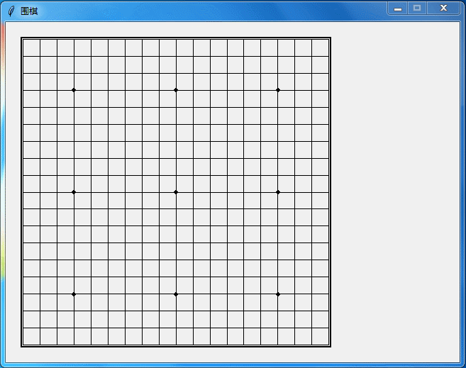 导入graphics.py后,调用tkinter库编写代码就变得简单方便。我用它简单写了一段围棋展示代码,之所以简单没涉及吃子、提子、打劫等,运行效果如下: