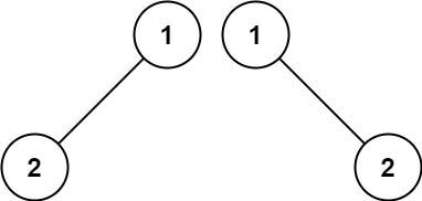 输入:p = [1,2], q = [1,null,2] 输出:false