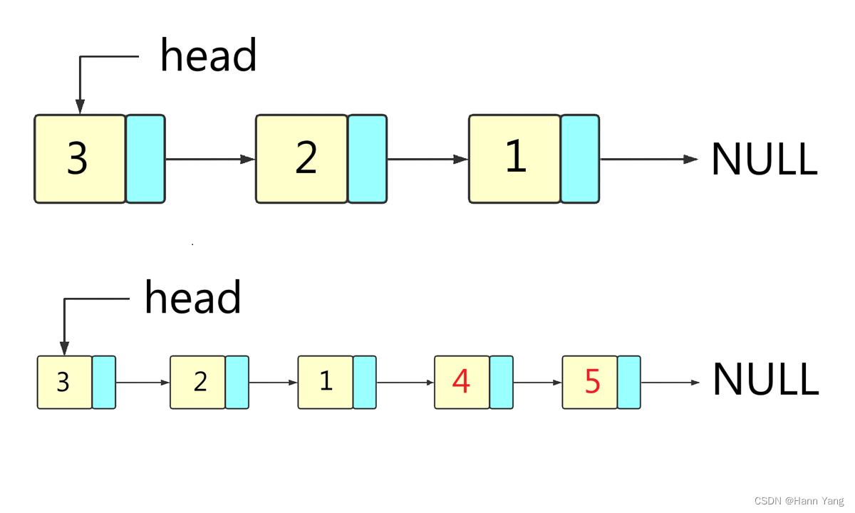 - 添加元素:在链表的头部添加新元素,需要修改头节点的指针。