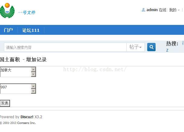 程序初步运行成功,还缺少编辑、删除等功能。用这种方法的好处是,直接使用discuz的后台管理功能,减少了大量工作量。