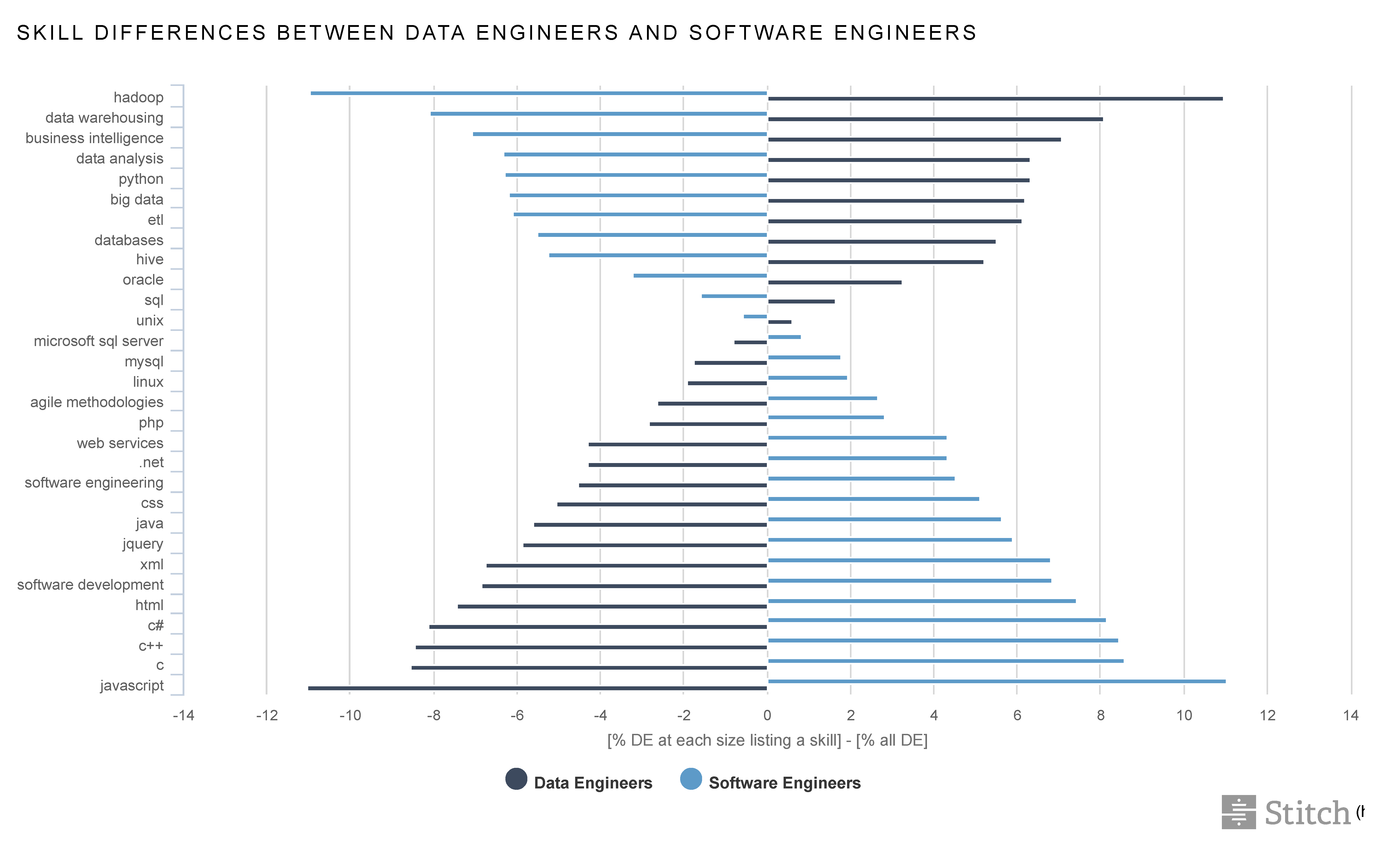 总体而言,直接与数据相关的技能获得了越来越多的重视,另一方面,某些核心的软件技能也为数据工程师所青睐。