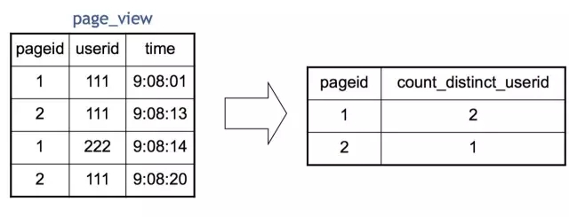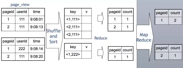 我们在Map端,每一个Map读取一部分表的数据,通常是64M或者256M,然后按需要Group By的Key分发到Reduce端。经过Shuffle Sort,每一个Key再在Reduce端进行聚合(这里是Count),然后就输出了最终的结果。值得一提的是,Distinct在实现原理上与Group By类似。当Group By遇上 Distinct……例如:SELECT pageid, COUNT(DISTINCT userid) FROM page_view GROUP BY pageid