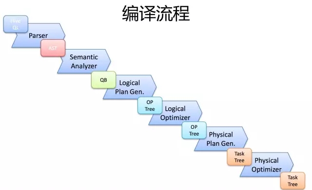 一条SQL,进入的Hive。经过上述的过程,其实也是一个比较典型的编译过程变成了一个作业。