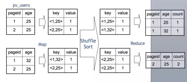 把每个网页的阅读数按年龄进行分组统计。由于前面介绍了,MapReduce就是一个Group By的过程,这个SQL翻译成MapReduce就是相对简单的。