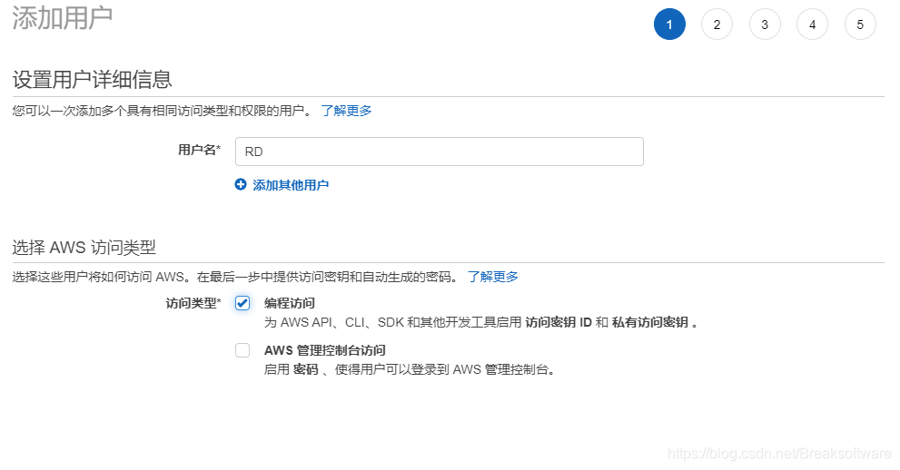像Leader我们给了他很高的权限,但是像“研发工程师”和“测试工程师”则不需要这么高的权限。我们以“研发工程师”为例,创建用户RD。此时我们只给他“编程访问”权限。