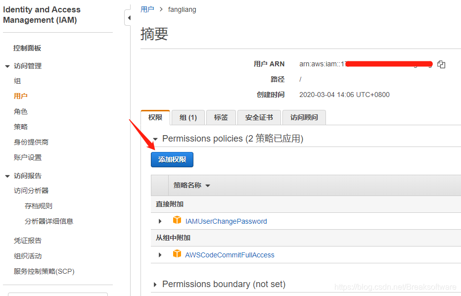目前,我们创建的用户都可以访问CodeCommit中的代码库。但是大部分时候,我们希望部分人不要拥有一些代码权限,包括拉取代码。