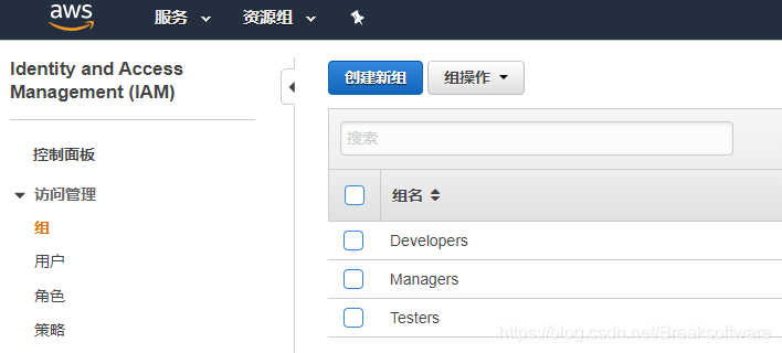 相似的方式,我们把“研发工程师”和“测试工程师”的组创建出来。它们的名字分别是"Developers"和“Testers”,对应的附加策略是“AWSCodeCommitPowerUser”和“AWSCodeCommitReadOnly”。