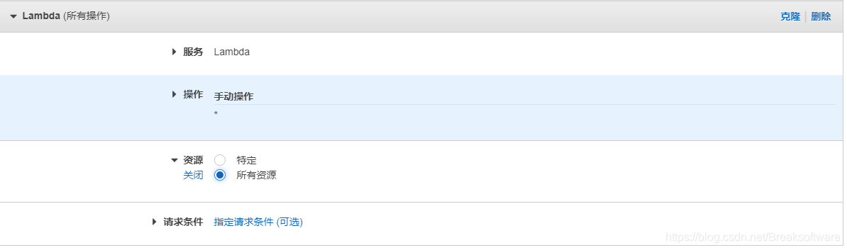 还要新增lambda权限,也是所有资源所有权限。(不严谨)