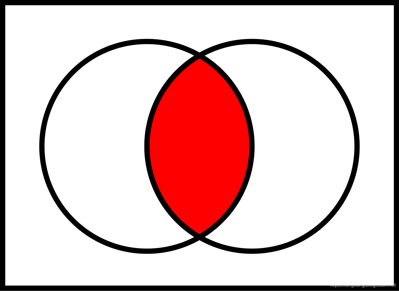 交集是集合运算中经常会用到的计算,其表达是两个集合共有的部分(图中红色区域)