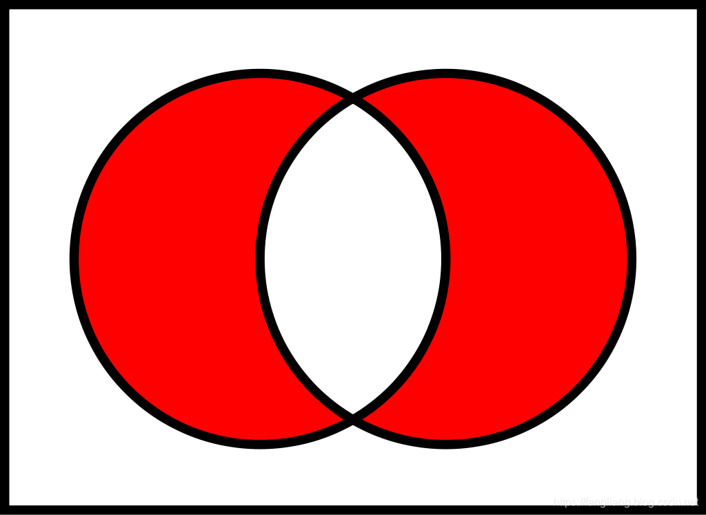对称差是指并集中,去除交集之外的部分(图中红色区域)